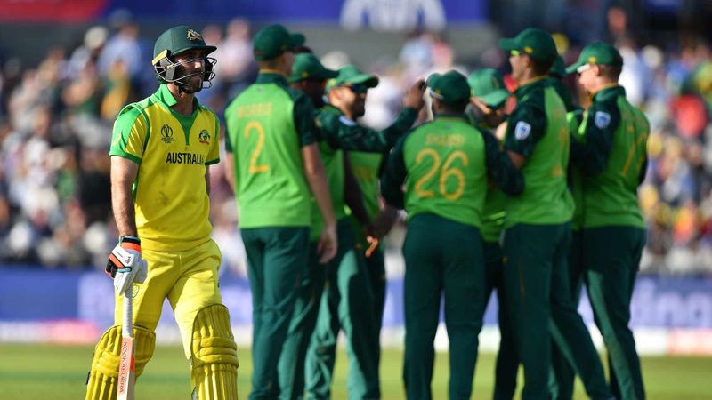 Australia will play England in the World Cup semi-finals after the holders suffered a dramatic 10-run defeat against South Africa at Old Trafford on Saturday.