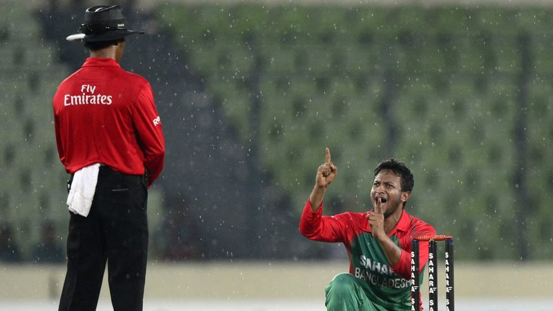 In an earlier match, Shakib had kicked and uprooted the stumps and angrily argued with the umpires after his appeal for leg-before against Mushfiqur Rahim was denied and later when play was stopped due to rain.