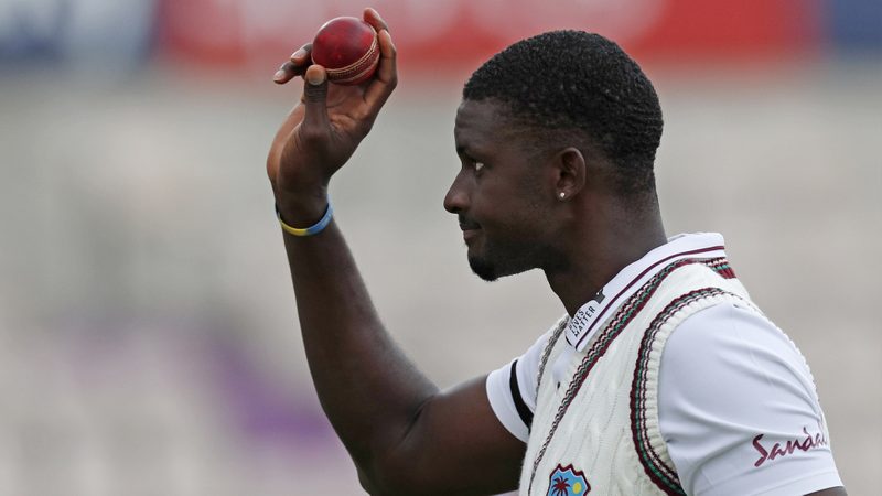 West Indies captain Jason Holder returned Test-best figures of 6-42 as England slumped to 204 all out on the second day of the series opener at Southampton on Thursday.
