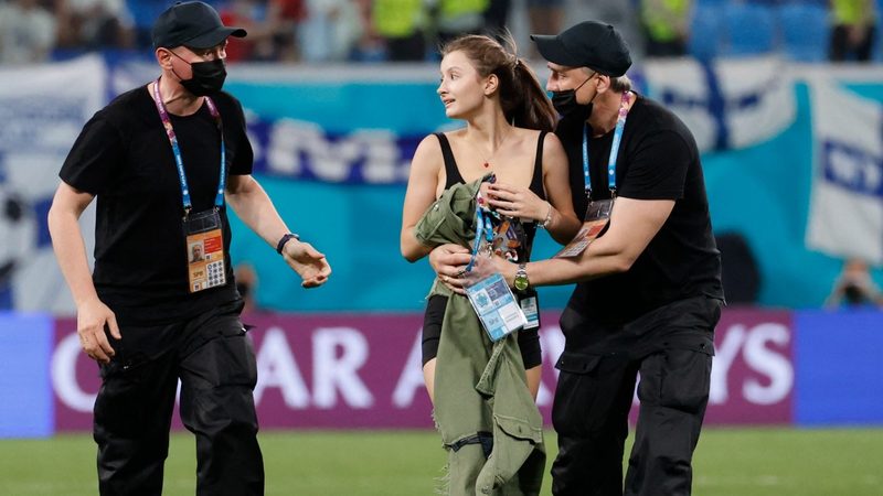 A pitch invader promoted cryptocurrency during the Euro 2020 game between Finland and Belgium on Monday.