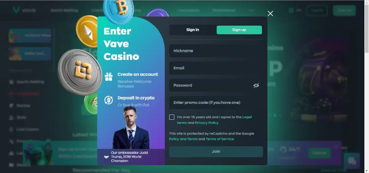 Signing up at Vave Casino and sportsbook is simple and fast. Just follow these easy steps to create your account: